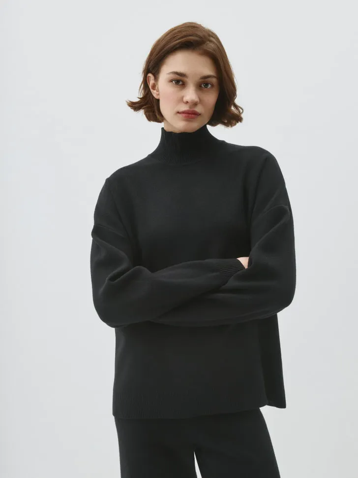 Высокий воротник-стойка не только придает изделию элегантный вид, но и служит надежной защитой от холодного ветра, сохраняя тепло даже в самую морозную погоду. Продуманный крой гарантирует идеальную посадку, не сковывая движений, что делает его отличным выбором как для активного отдыха, так и для спокойных вечеров. Сочетайте его с любимыми джинсами или создайте более изысканный ансамбль с юбкой и ботильонами. Наш свитер – это воплощение безупречного вкуса и практичности, способное преобразить любой образ и подарить ощущение уюта. Не упустите возможность добавить эту универсальную вещь в свой гардероб!