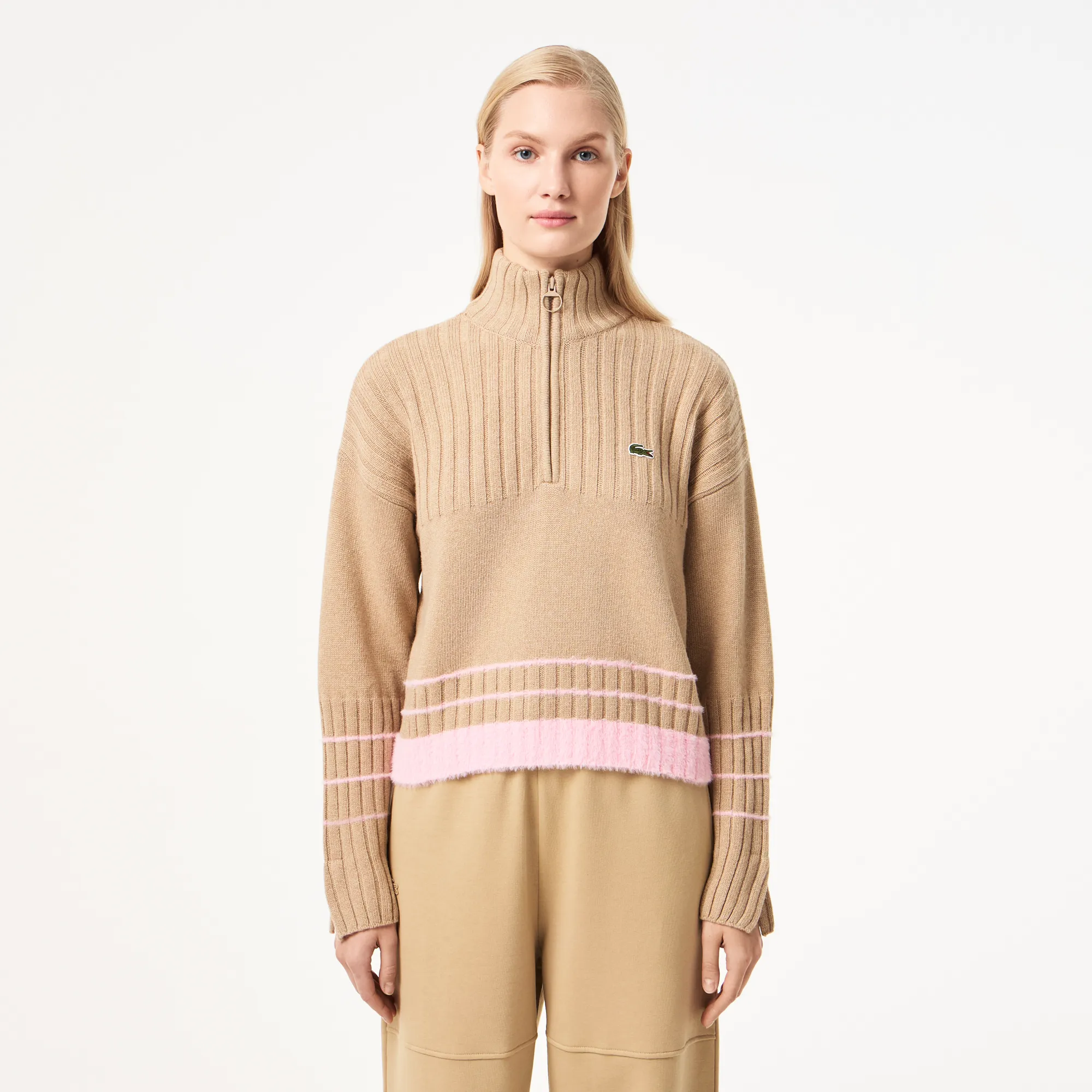 Женский короткий свитер Lacoste на молнии, бежевый, арт. af2517