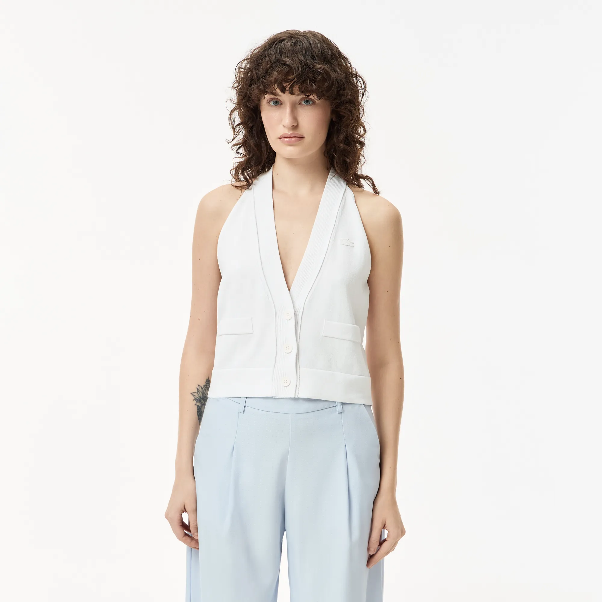 Представляем идеальное решение для создания изысканного и комфортного образа – женский лёгкий кардиган Lacoste без рукавов. Этот элегантный элемент гардероба от всемирно известного бренда Lacoste разработан для тех, кто ценит безупречный стиль и высокое качество. Кардиган выполнен в универсальном белом цвете, что делает его легко сочетаемым с абсолютно любой одеждой в вашем шкафу, от повседневных джинсов до вечерних нарядов.