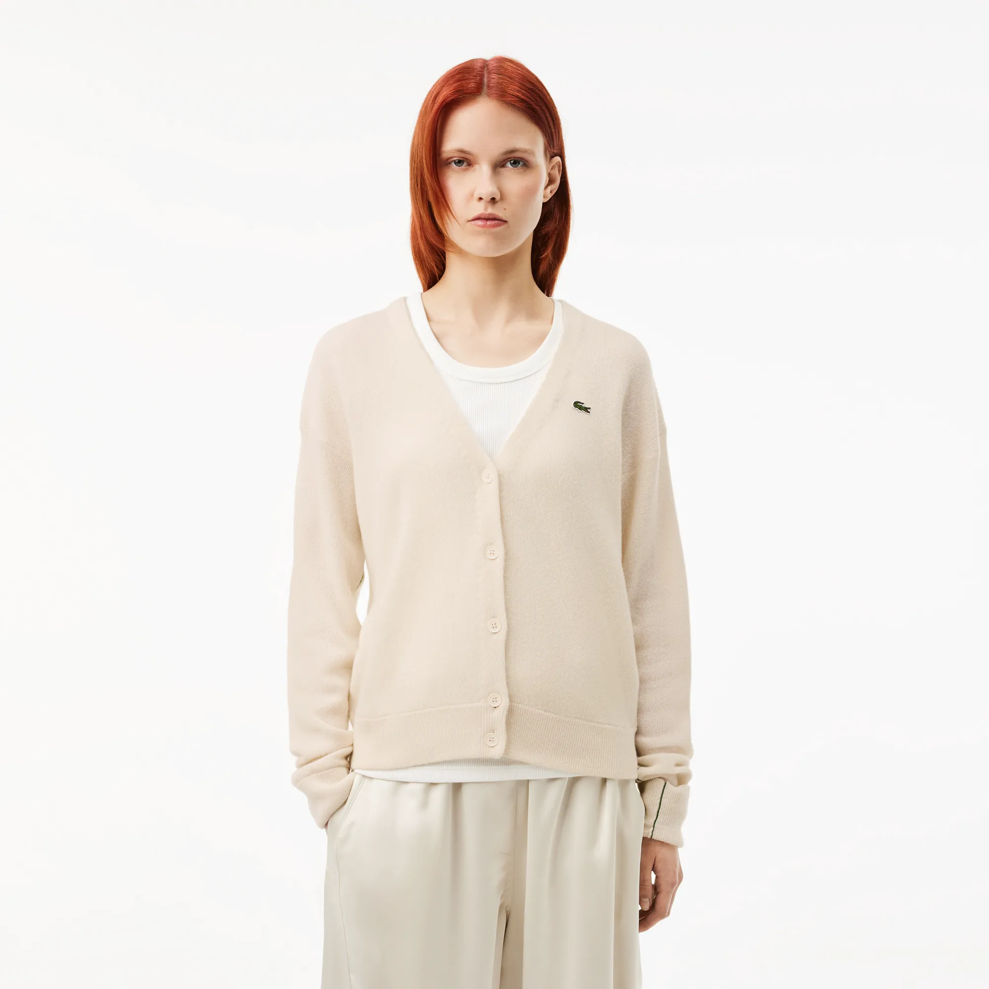 Женский шерстяной кардиган Lacoste с V-образным вырезом, белый, арт. af9545