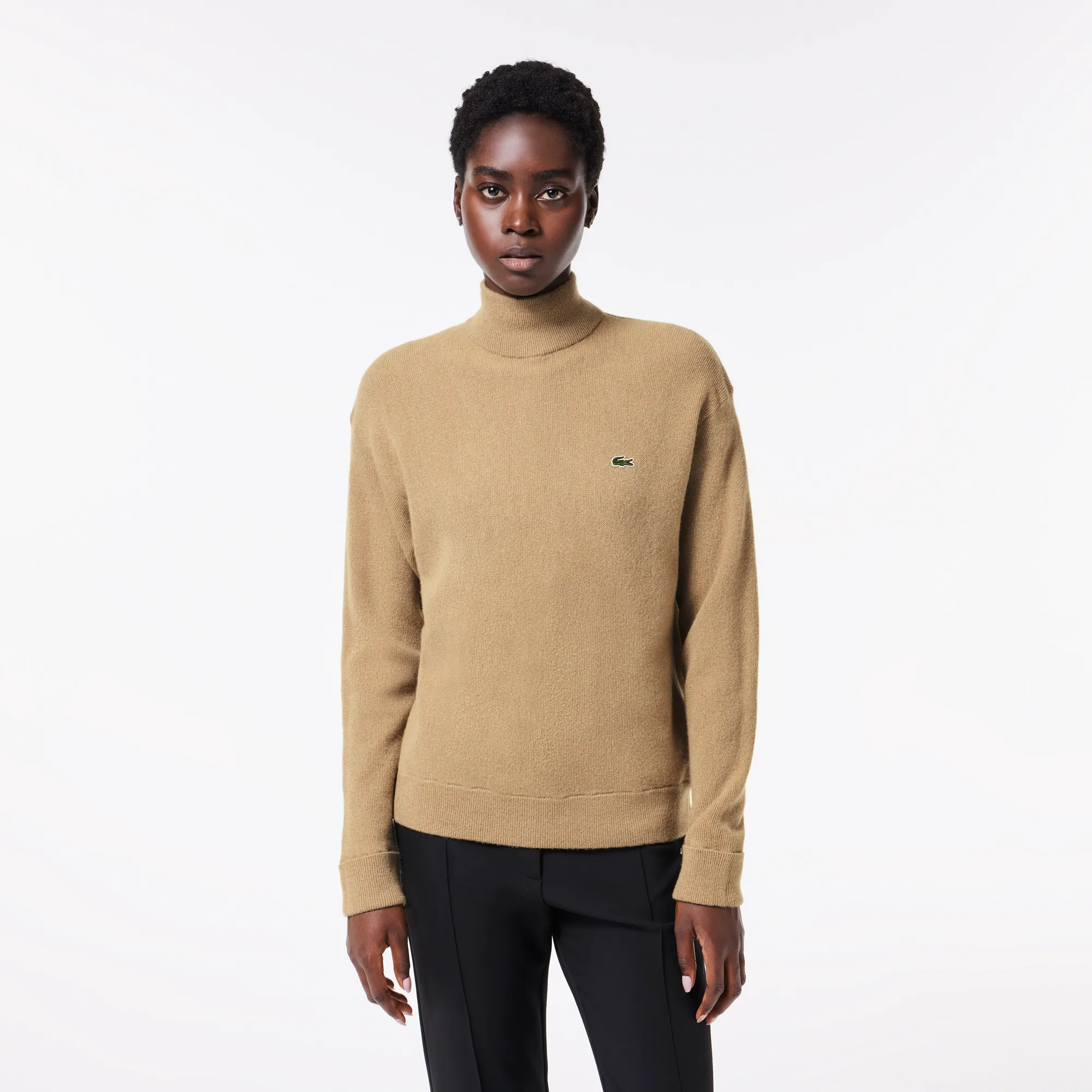 Женский шерстяной свитер Lacoste с высоким воротом, коричневый, арт. af9542