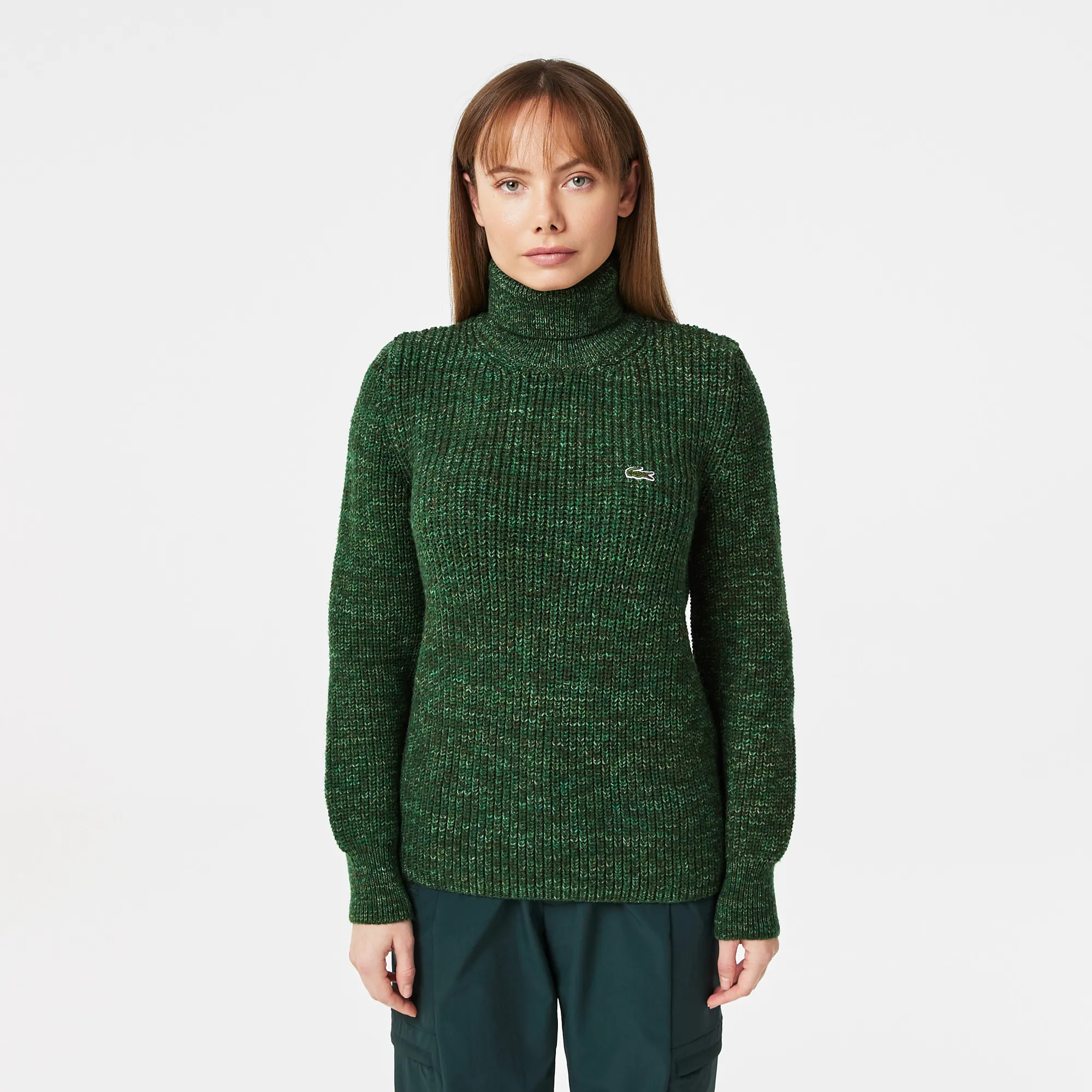 Женский шерстяной свитер Lacoste с высоким воротом, зеленый, арт. af2418