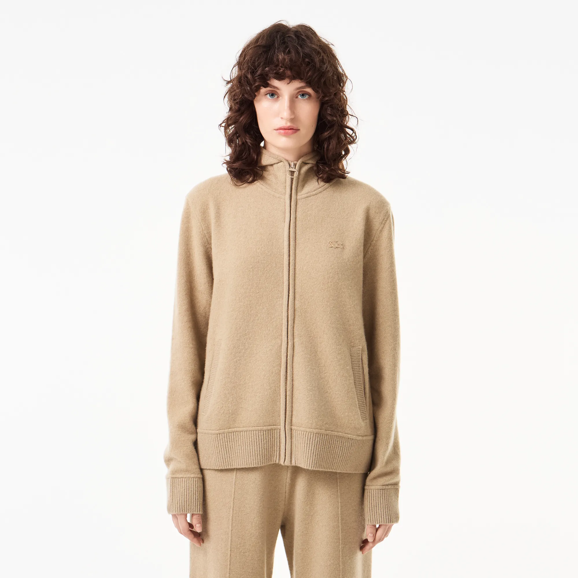 Женский шерстяной свитер-толстовка Lacoste с капюшоном, бежевый, арт. af2508r