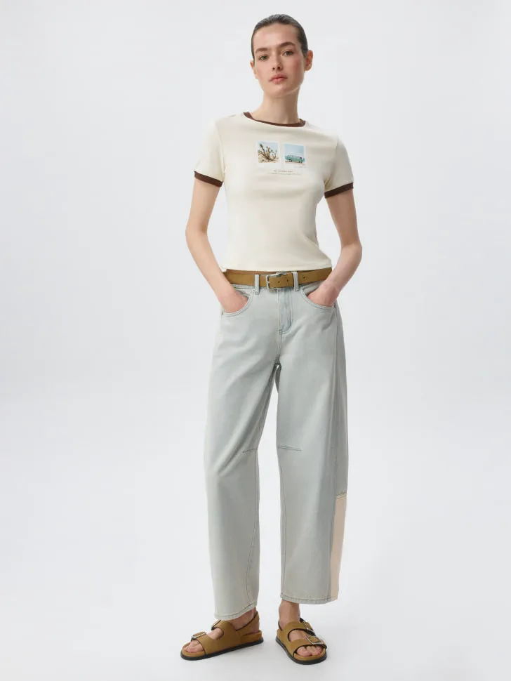Джинсы выполнены в трендовом светло-голубом оттенке, что позволяет легко комбинировать их с разнообразными элементами гардероба. Высокая посадка визуально удлиняет ноги, а объемные штанины, слегка зауженные к щиколотке, обеспечивают максимальный комфорт и свободу движений. Эти джинсы – идеальный выбор как для повседневных прогулок, так и для встреч с друзьями. Добавьте к ним кеды и простую футболку для ультра-кэжуал образа или попробуйте сочетать с элегантной рубашкой и ботильонами для создания более утонченного и смелого комплекта. Откройте для себя новый уровень комфорта и стиля с нашими джинсами Balloon!