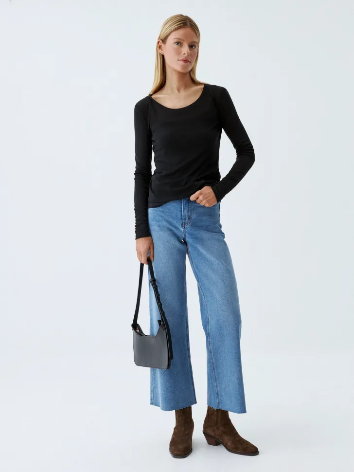 Представляем вашему вниманию стильные и универсальные джинсы-кюлоты – идеальный выбор для тех, кто ценит комфорт и модные тенденции. Эта модель создана для женщин, которые хотят выглядеть актуально, не жертвуя при этом удобством. Свободный, укороченный крой обеспечивает максимальную свободу движений и прекрасно гармонирует с различными типами обуви, от кедов до ботильонов.
