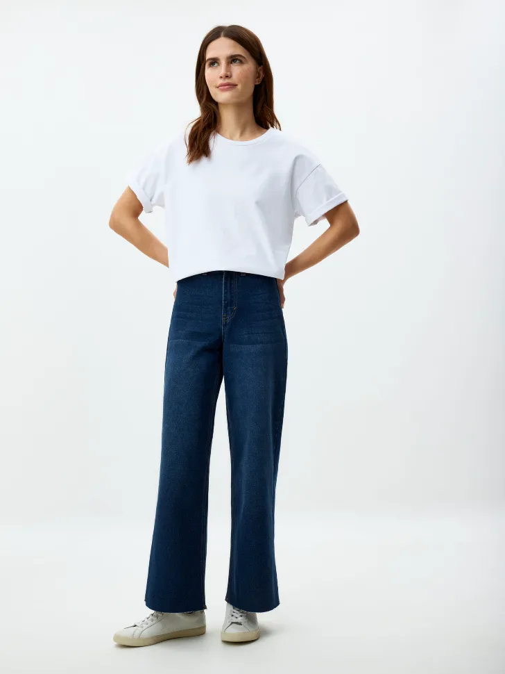 Наши джинсы-кюлоты легко трансформируются из повседневного образа в нарядный. Наденьте их с любимыми кедами и худи для расслабленного дня или с элегантными босоножками и шелковой блузой для вечернего выхода. Благодаря высококачественному дениму, джинсы прекрасно держат форму, устойчивы к износу и обеспечивают идеальную посадку. Откройте для себя новый уровень комфорта и стиля с этими уникальными джинсами, которые станут вашей любимой вещью!