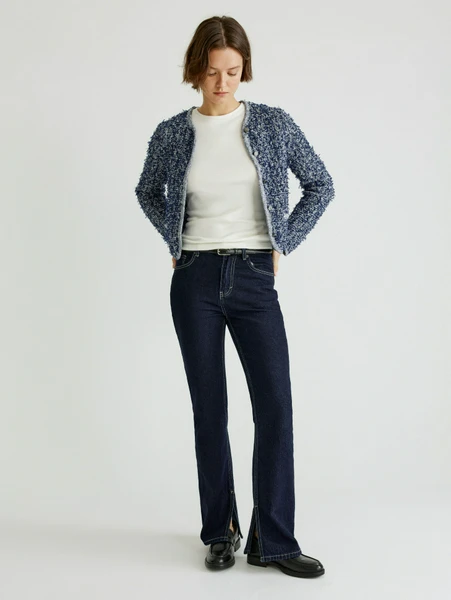 Идеальные джинсы Sela Flared – ваш ключ к созданию стильных и комфортных образов на каждый день! Эти темно-синие джинсы с модным расклешенным кроем идеально впишутся в гардероб современной женщины.