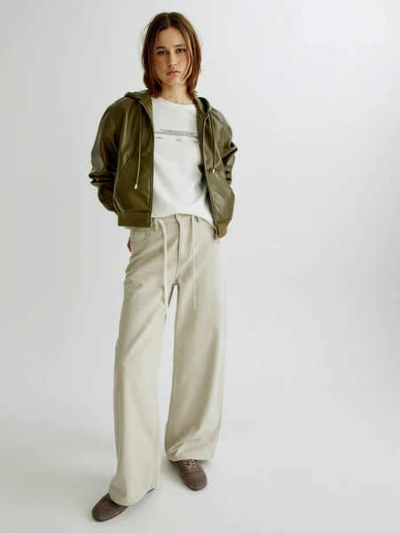 - Прямой крой: визуально удлиняет ноги, создавая элегантный и современный силуэт.