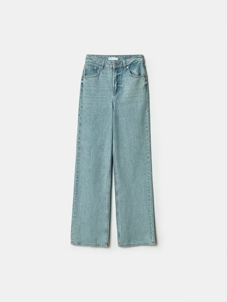 Высокая посадка эффектно подчеркивает талию, создавая удлиненный силуэт, а свободный крой по всей длине обеспечивает непревзойденную свободу движений и комфорт. Изготовленные из прочного и приятного к телу денима, они гарантируют долговечность и сохранение первоначального вида даже после многочисленных стирок. Светло-голубой оттенок делает их отличным выбором для любого сезона, особенно для весенне-летнего периода.