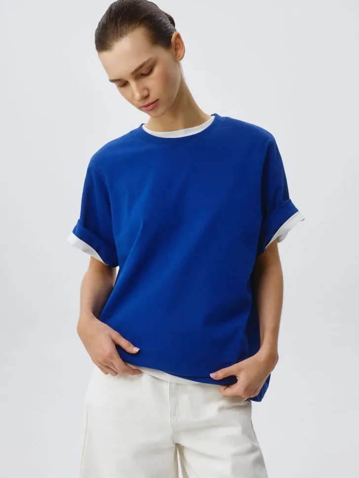 Изготовленная из высококачественного, приятного к телу и дышащего материала, наша футболка дарит ощущение мягкости и свежести. Она не теряет форму после многократных стирок и сохраняет свой первоначальный вид надолго, что делает её по-настоящему выгодным приобретением. Легко сочетается с джинсами, брюками, юбками, шортами или спортивными штанами. Это идеальный компаньон для создания многослойных комплектов – носите её под пиджак, кардиган или куртку. Добавьте свои любимые аксессуары, чтобы придать образу индивидуальности и создать уникальный лук! Это не просто футболка, это чистый холст для ваших стилевых экспериментов, позволяющий выразить свою индивидуальность каждый день. Отличный выбор для тех, кто ценит практичность, комфорт и трендовый дизайн.