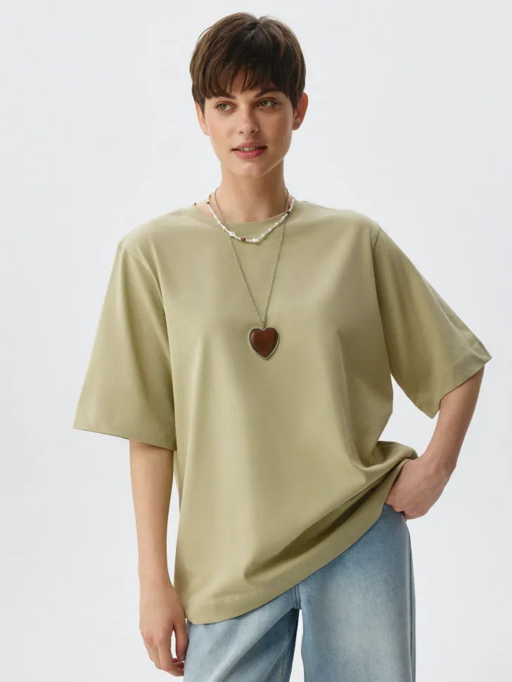 Уникальный оверсайз-крой не только соответствует последним модным тенденциям, но и гарантирует идеальную посадку на любой фигуре, обеспечивая непринужденный и расслабленный вид. Она станет вашей палочкой-выручалочкой для создания бесчисленных комбинаций: носите ее с джинсами для повседневного образа, сочетайте с классическими брюками для смелого стиля smart-casual или наденьте поверх велосипедок для максимально комфортного спортивного лука. Базовая футболка оверсайз – это инвестиция в ваш стиль, которая окупится сторицей благодаря своей универсальности и долговечности. Обновите свой гардероб этой незаменимой вещью и почувствуйте, как легко и приятно быть модным каждый день!
