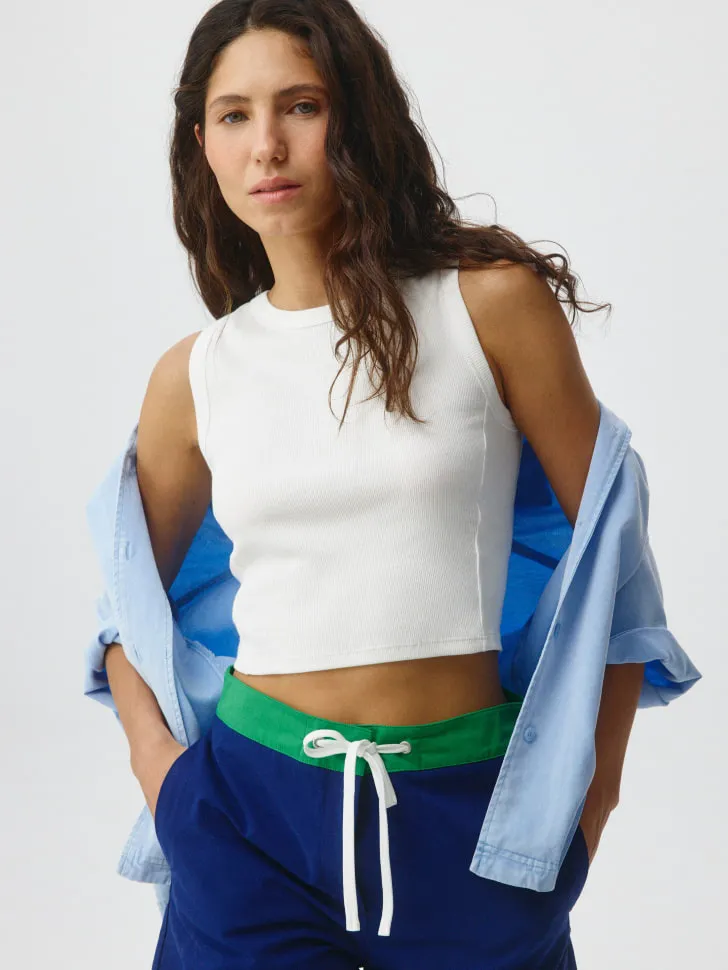Топ выполнен из высококачественной эластичной ткани в мелкий рубчик, которая нежно прилегает к телу, подчеркивая естественные изгибы. Материал приятен к коже, хорошо дышит и сохраняет форму даже после многочисленных стирок. Его минималистичный дизайн делает его идеальной основой для экспериментов: сочетайте с яркими аксессуарами, пиджаками, кардиганами или носите как самостоятельный акцент. Создавайте свой уникальный образ каждый день, чувствуя себя уверенно и стильно! Этот топ — инвестиция в ваш базовый гардероб, которая прослужит вам долго.