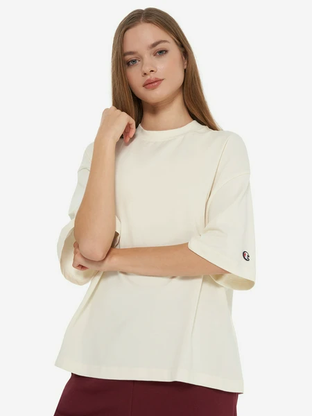Представляем вашему вниманию женскую футболку Champion – воплощение комфорта и современного стиля. Эта футболка в универсальном бежевом цвете станет незаменимой основой для создания множества образов, от повседневных до спортивных. Свободный крой обеспечивает идеальную посадку и полную свободу движений, а классический круглый вырез горловины добавляет изделию элегантности.