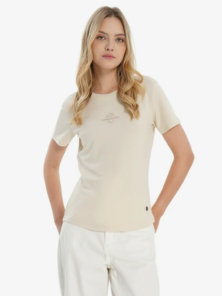Футболки и топыПредставляем женскую футболку Cordillero — идеальное сочетание стиля и практичности для современного гардероба. Эта футболка бежевого цвета создана для тех, кто ценит комфорт и универсальность. Изготовленная из высококачественного синтетического материала, она обеспечивает превосходную износостойкость и легкость в уходе.