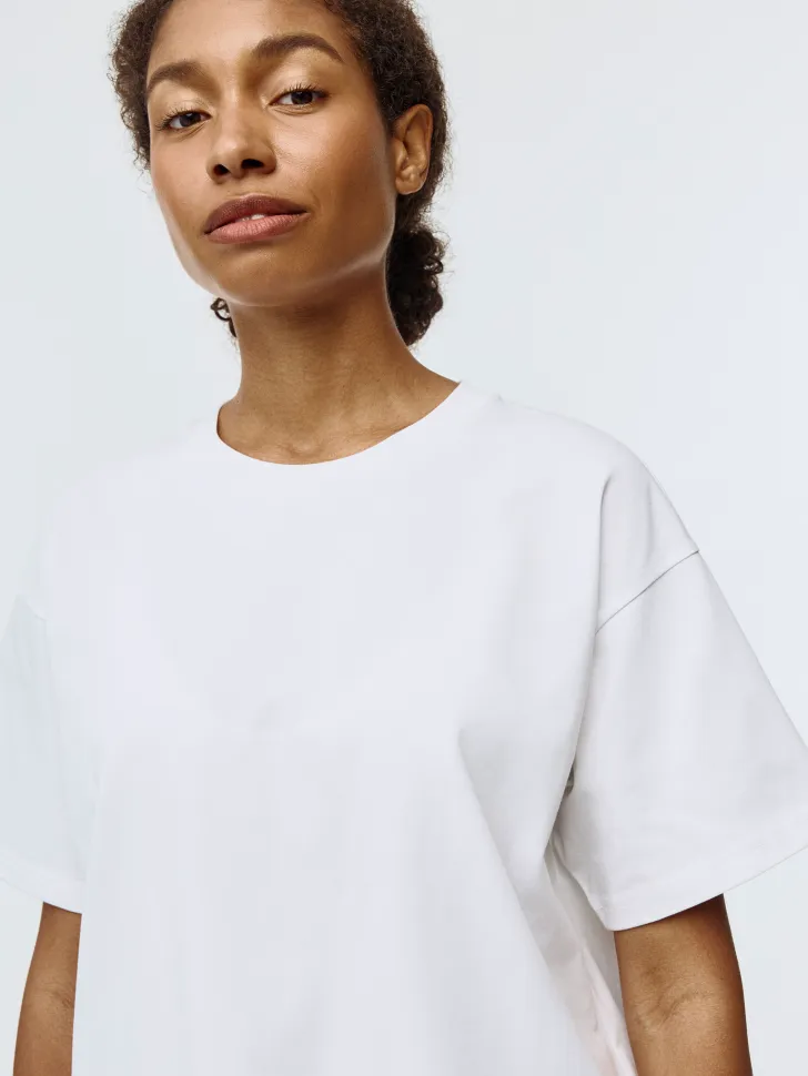 Откройте для себя идеальную футболку KATE OVERSIZE FIT – воплощение современного стиля и исключительного комфорта! Эта модель разработана специально для тех, кто ценит свободу и непринужденность в одежде. Свободный крой (oversize) позволяет чувствовать себя уверенно и комфортно в течение всего дня, а универсальный белый цвет делает ее незаменимой базовой вещью в любом гардеробе.