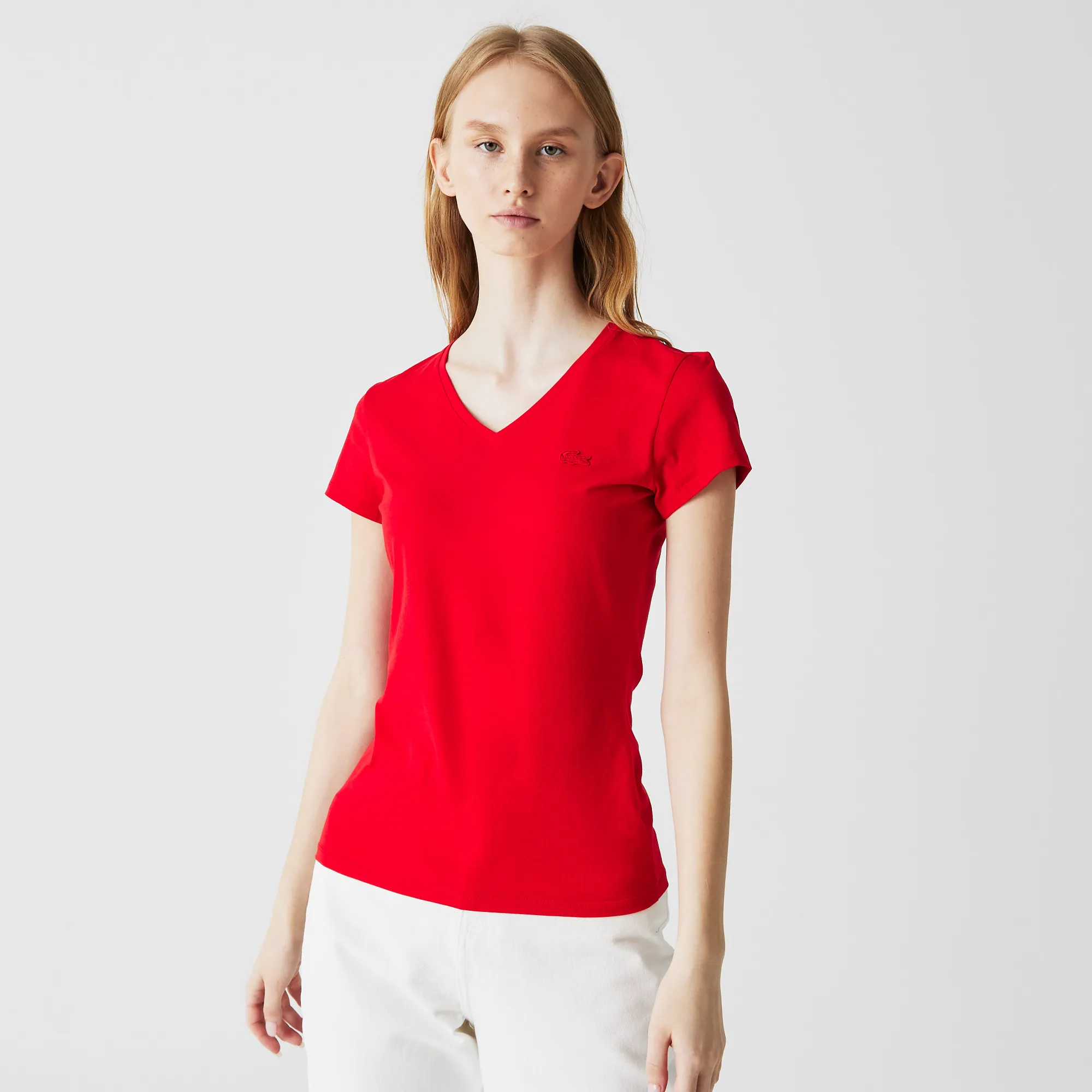 Яркий красный цвет этой футболки придаст вашему образу неповторимую энергию и выразительность, сделав ее заметным акцентом. Она универсальна и легко сочетается: носите ее с джинсами или шортами для создания непринужденного кэжуал-лука, или комбинируйте с классическими брюками и юбками для более элегантного и изысканного ансамбля. Независимо от вашего выбора, эта футболка Lacoste гарантирует вам ощущение стиля, уверенности и абсолютного комфорта. Инвестируйте в качество, которое никогда не выходит из моды! Артикул товара: TF2214.