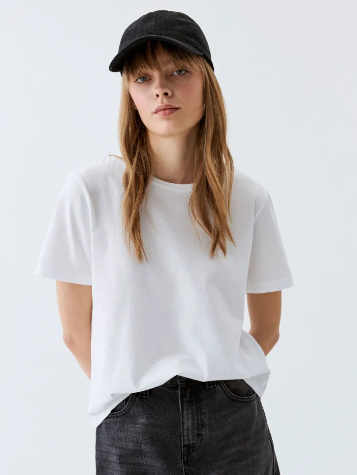Белый цвет – это вечная классика, которая легко комбинируется с любыми элементами вашего стиля, будь то джинсы, юбки или брюки. Создавайте легкие и стильные аутфиты, добавляя аксессуары или нося футболку как самостоятельный элемент. Футболка MARY REGULAR FIT – это ваш билет в мир комфорта и безупречного стиля, который никогда не выходит из моды. Добавьте эту универсальную вещь в свой гардероб и наслаждайтесь бесконечными возможностями для модных экспериментов!