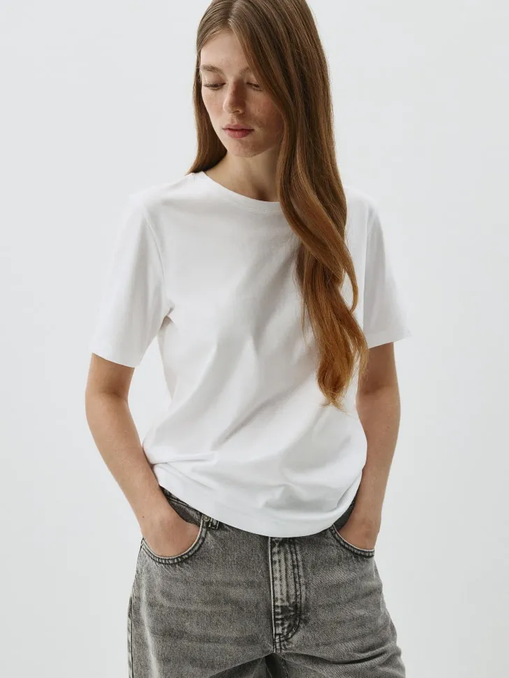 Откройте для себя идеальное сочетание стиля и комфорта с Футболкой MARY REGULAR FIT! Эта модель разработана, чтобы стать вашей любимой вещью на каждый день, предлагая универсальность и непревзойденное удобство. Ее классический крой Regular Fit обеспечивает свободную посадку, которая не сковывает движений, делая ее идеальным выбором для активного образа жизни и расслабленного отдыха. Вы сможете с легкостью создавать множество образов, комбинируя ее с джинсами, шортами или юбками.
