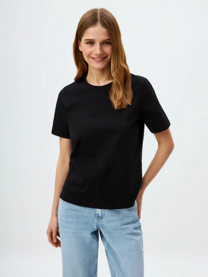 Изготовленная из высококачественного материала, Футболка MARY приятна к телу и обеспечивает максимальный комфорт на протяжении всего дня. Черный цвет – это вечная классика, которая легко комбинируется с любыми элементами вашего гардероба, от повседневных джинсов до элегантных юбок. Станьте обладательницей базовой вещи, которая выручит вас в любой ситуации и позволит экспериментировать со стилями. Создавайте новые луки, чувствуйте себя уверенно и оставайтесь в тренде с Футболкой MARY REGULAR FIT!
