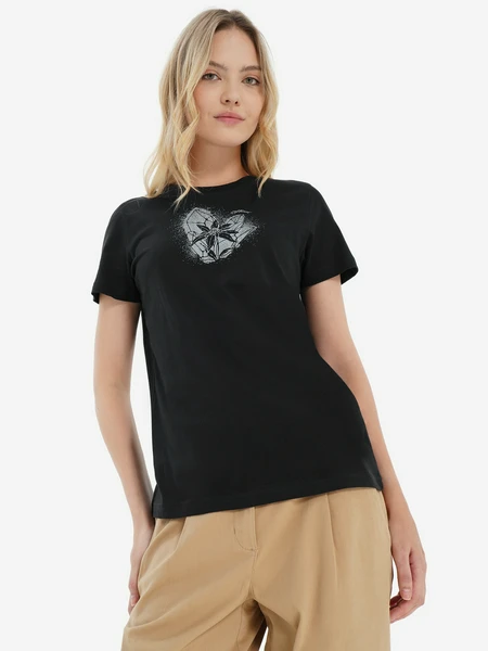 Эта универсальная футболка черного цвета идеально подходит как для динамичных путешествий, так и для расслабленного повседневного образа. Изготовленная из натурального материала, она гарантирует максимальный комфорт в течение всего дня, а прямой покрой обеспечивает свободу движений.