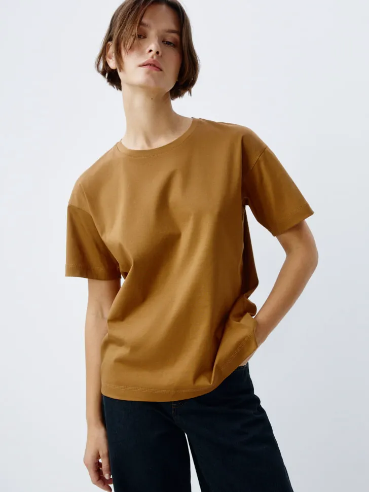 Футболка оверсайз из мерсеризованного хлопка, коричневый, арт. 15520