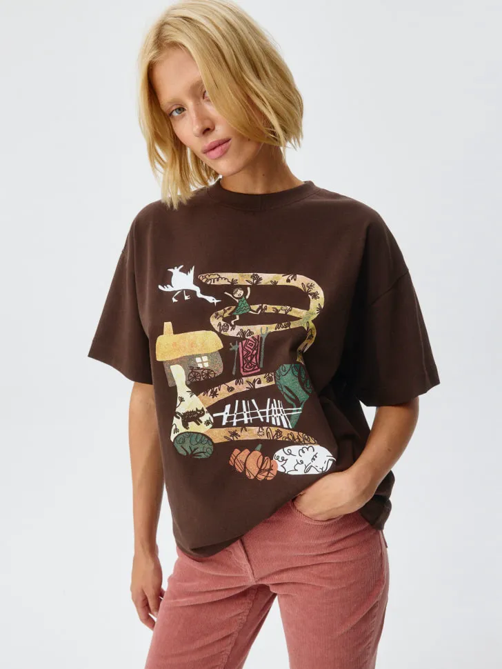 Футболка оверсайз с принтом, коричневый, арт. 4685