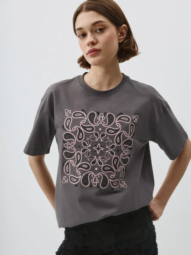 Представляем вашему вниманию эксклюзивную оверсайз футболку с изысканной вышивкой – идеальное сочетание современного стиля, непревзойденного комфорта и уникального дизайна. Эта модель создана для тех, кто ценит свободу самовыражения и высокое качество. Свободный крой оверсайз обеспечивает максимальный комфорт и легкость движений, делая футболку идеальным выбором как для активного дня, так и для расслабленного отдыха. Утонченная вышивка, выполненная с особым вниманием к деталям, придает изделию неповторимый шарм и элегантность, выделяя вас из толпы.