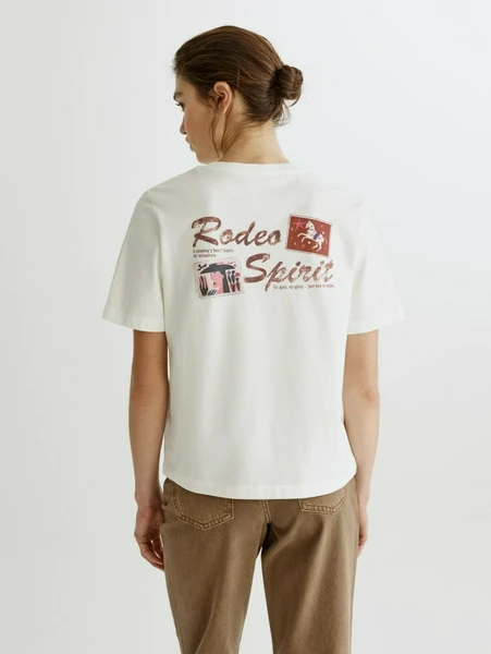 Футболка оверсайз Sela с принтом и вышивкой Rodeo Spirit, бежевый, арт. 37284