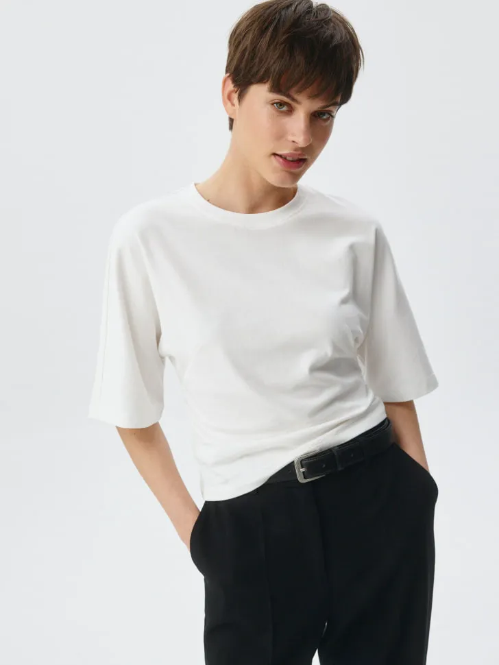 Футболки и топыОткройте для себя идеальную футболку, которая элегантно подчеркивает вашу талию и создает безупречный силуэт. Эта модель разработана с учетом самых актуальных тенденций, чтобы вы чувствовали себя уверенно и стильно в любой ситуации. Ее продуманный крой обеспечивает идеальную посадку, визуально удлиняя фигуру и делая ее более изящной. Изготовленная из мягкого, дышащего материала, эта футболка подарит вам невероятный комфорт даже в самый насыщенный день.