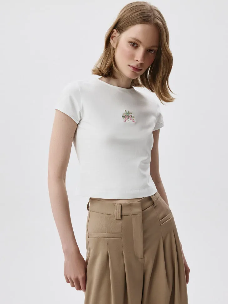 Носите ее с любимыми джинсами для создания расслабленного повседневного образа, комбинируйте с элегантной юбкой для романтического свидания или используйте как стильный акцент под строгий пиджак для более делового или праздничного вида. 🌟 Универсальность этой футболки позволяет экспериментировать и создавать бесчисленное множество стильных комбинаций, подходящих для любого случая. Почувствуйте себя уверенно, привлекательно и женственно в любой ситуации! Добавьте нотку изысканной элегантности в свой образ с нашей уникальной приталенной футболкой с вышивкой. 💖 Вы заслуживаете лучшего!