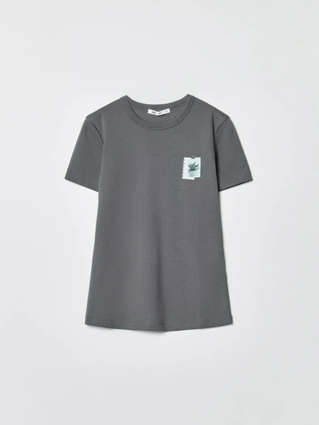 Футболки и топыПредставляем стильную футболку Sela – идеальный выбор для вашего современного гардероба! Эта модель сочетает в себе комфорт и актуальный дизайн, делая ее незаменимой вещью для повседневных образов. Футболка выполнена в элегантном темно-сером цвете, который легко вписывается в любую палитру и позволяет создавать множество стильных комбинаций. Главная особенность – оригинальный принт, изображающий растение в горшке, словно прикрепленное к футболке, добавляет изделию свежести и уникальности.
