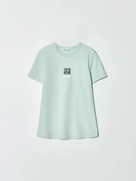 Уникальный мятный оттенок освежит ваш гардероб, а стильный принт в центре груди добавит оригинальности. Продуманный крой обеспечивает идеальную посадку по фигуре, не сковывая движений. Эта футболка станет незаменимой основой для повседневных и расслабленных образов, легко комбинируясь с джинсами, шортами или юбками. Прекрасно подходит для создания весенне-летних луков.