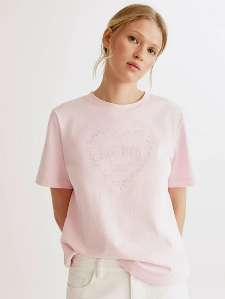 Особое очарование этой модели придает изысканная вышивка в форме сердца, инкрустированная деликатными стразами. Это subtle украшение добавляет образу неповторимости, не перегружая его. Футболка Sela станет прекрасной основой для: