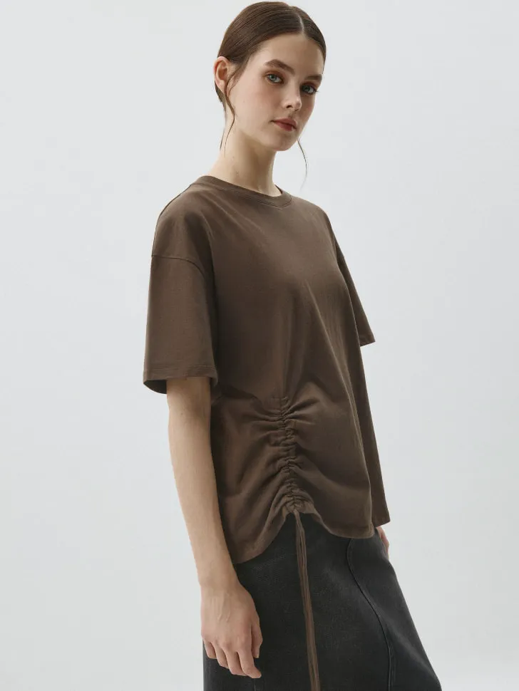 Представляем вашему вниманию уникальную футболку со стильной сборкой – незаменимый элемент современного женского гардероба. Эта модель идеально сочетает в себе комфорт и самые актуальные модные тенденции, позволяя с легкостью создавать разнообразные и запоминающиеся образы на каждый день. Высококачественная ткань обеспечивает приятные ощущения при носке и долговечность изделия, гарантируя, что футболка сохранит свой первозданный вид даже после многочисленных стирок. Оригинальная кулиска, расположенная сбоку, не только добавляет игривую изюминку дизайну, но и позволяет регулировать степень драпировки, подчеркивая достоинства вашей фигуры.