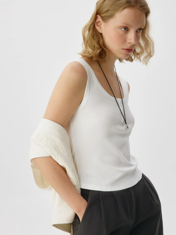 Изготовленный из высококачественного эластичного материала, топ в рубчик обеспечивает идеальную посадку по фигуре, не сковывая движений и сохраняя форму после многократных стирок. Мягкая ткань приятна к телу, что делает его идеальным выбором для ношения в течение всего дня. Сочетайте его с джинсами для кэжуал-образа, брюками палаццо для элегантного вида или используйте как базовый слой под пиджак или кардиган. Этот топ — ваша инвестиция в безупречный стиль и комфорт на каждый день!