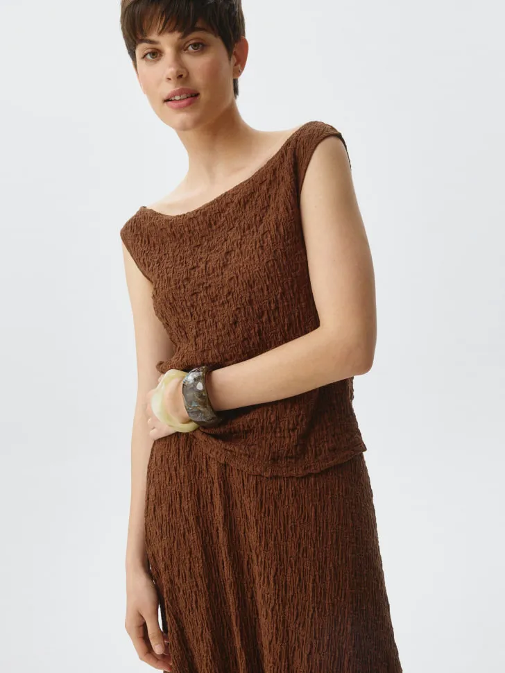 Откройте для себя идеальное сочетание стиля и комфорта с нашим укороченным топом из жатого трикотажа! Эта вещь станет незаменимой основой вашего гардероба, предлагая универсальность и модный акцент для любого образа. Изготовленный из высококачественного жатого трикотажа, топ обеспечивает исключительную мягкость и легкость, позволяя вашей коже дышать даже в самые теплые дни. Уникальная фактура материала придает изделию современный и динамичный вид, выделяя его на фоне стандартных моделей. Он не только подчеркивает достоинства фигуры, но и дарит непревзойденное ощущение свободы.