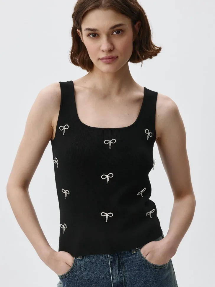 Вязаный топ с бантиками из страз, арт. 4004
