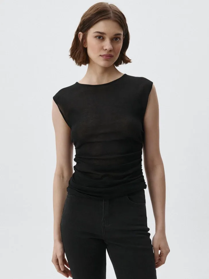 Представляем вашему вниманию изысканный вязаный топ с элегантной драпировкой – идеальный выбор для тех, кто ценит комфорт и стиль! Этот легкий и воздушный топ станет незаменимым элементом вашего летнего гардероба. Созданный из высококачественной, мягкой пряжи, он обеспечивает невероятное удобство и позволяет коже дышать даже в самые знойные дни. Изящная драпировка не только придает топу уникальный вид, но и эффектно подчеркивает силуэт, добавляя образу шарма и женственности.