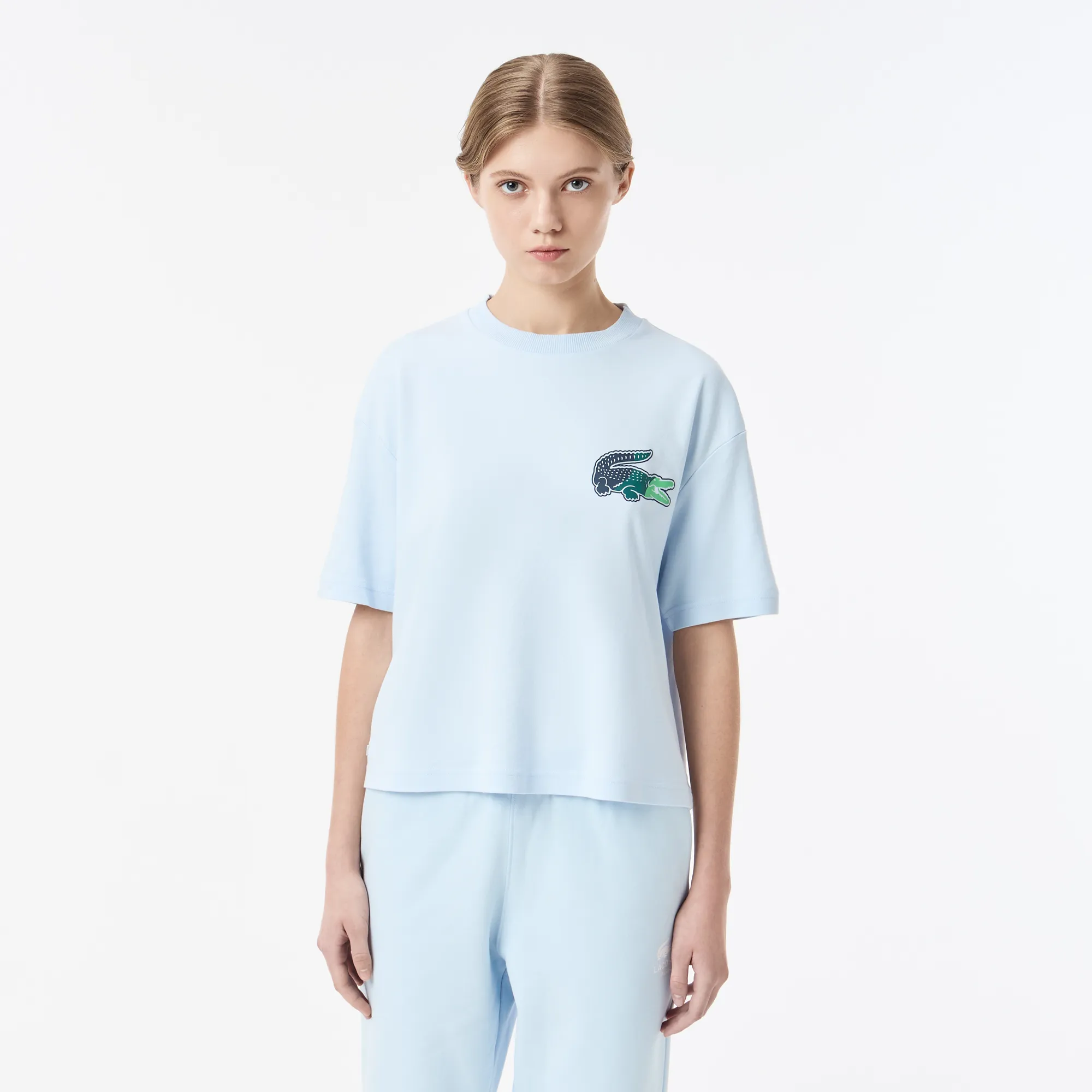 Представляем идеальное дополнение к вашему летнему гардеробу – женскую футболку Lacoste из высококачественного хлопка! Эта модель сочетает в себе безупречный стиль и невероятный комфорт, благодаря чему станет вашей любимой вещью для повседневных образов. Изысканный голубой цвет придаст свежести любому ансамблю, а легендарный крокодил Lacoste подчеркнет ваш тонкий вкус и приверженность качеству.