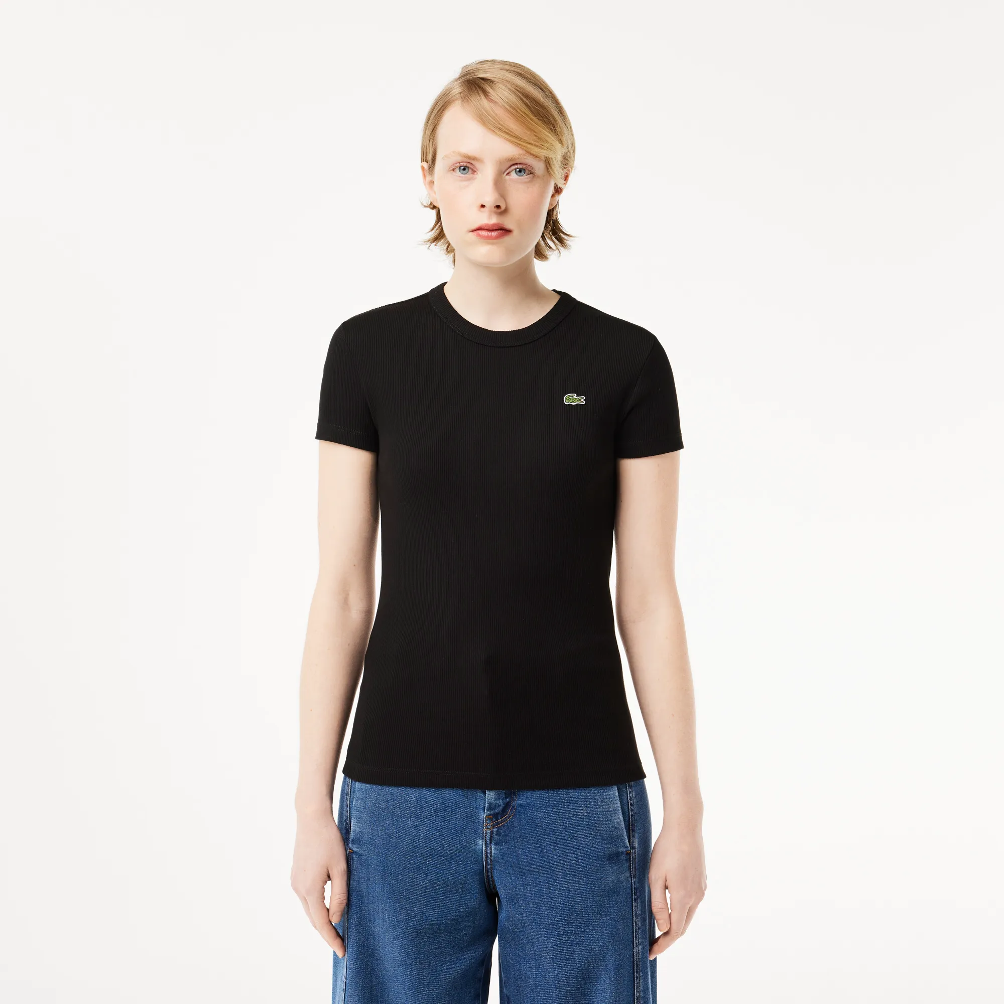Женская футболка Lacoste Slim Fit из хлопка в рубчик, черный, арт. tf5538
