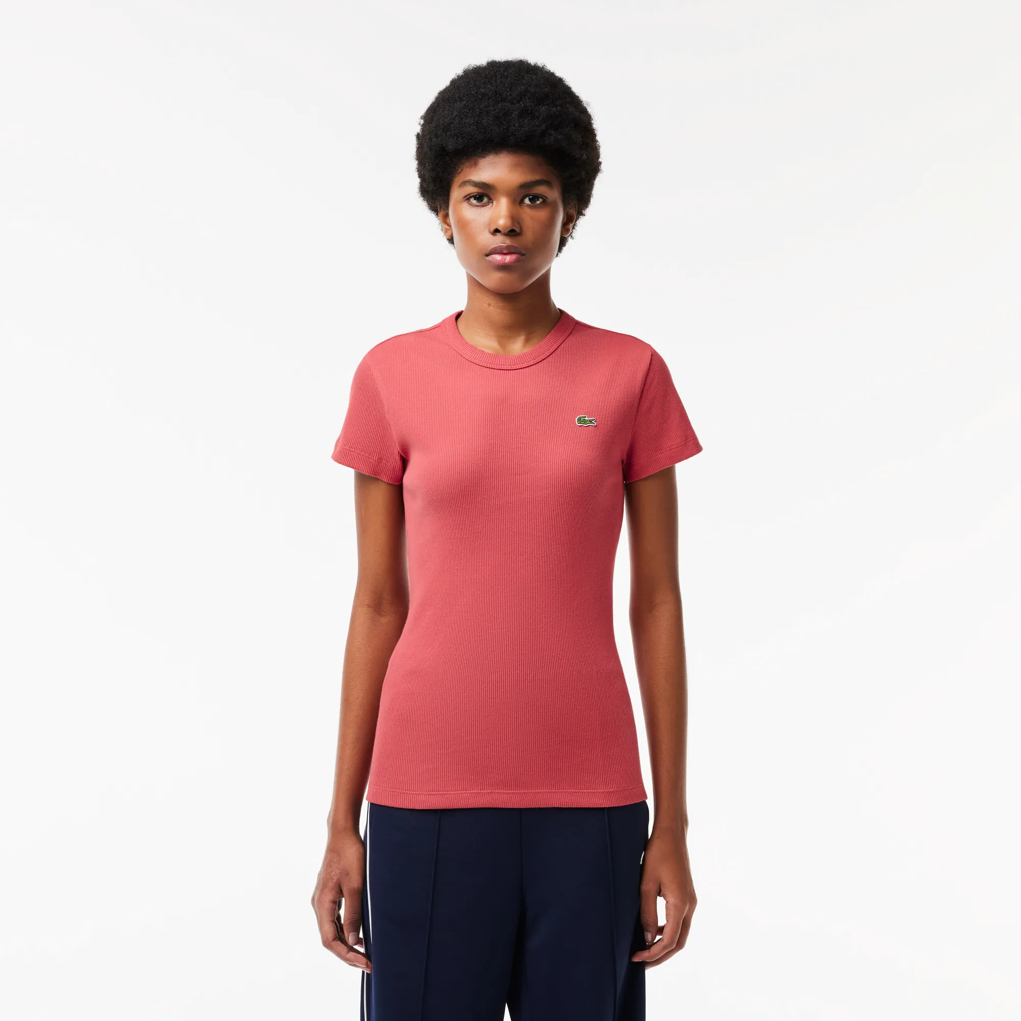 Женская футболка Lacoste Slim Fit из хлопка в рубчик, розовый, арт. tf5538