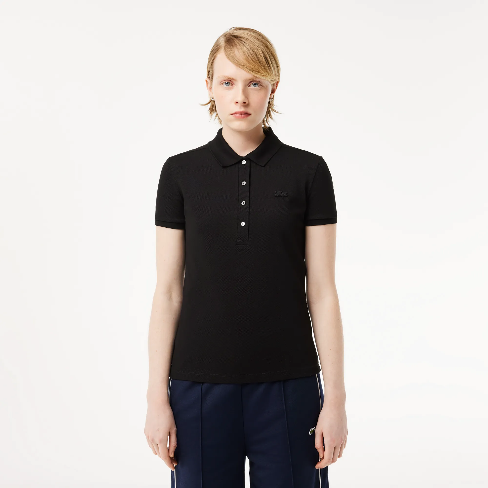 Женское поло Lacoste Slim Fit из эластичного хлопка, черный, арт. pf5462