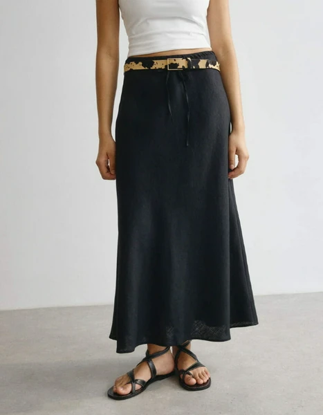 Юбка макси SELA из льна, черный, арт. 38275
