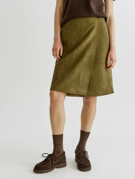 Откройте для себя идеальное сочетание стиля и комфорта с юбкой Sela на запах. Эта женская демисезонная юбка, выполненная из высококачественной искусственной замши в модном оливковом цвете, станет жемчужиной вашего повседневного гардероба. Ее уникальный крой на запах не только придает особую элегантность, но и позволяет идеально подогнать изделие по фигуре, обеспечивая непревзойденный комфорт в течение всего дня.
