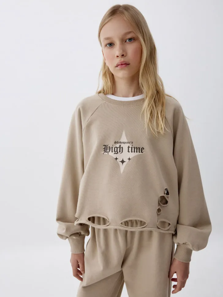 Рваный свитшот с принтом для девочек, арт. 6182