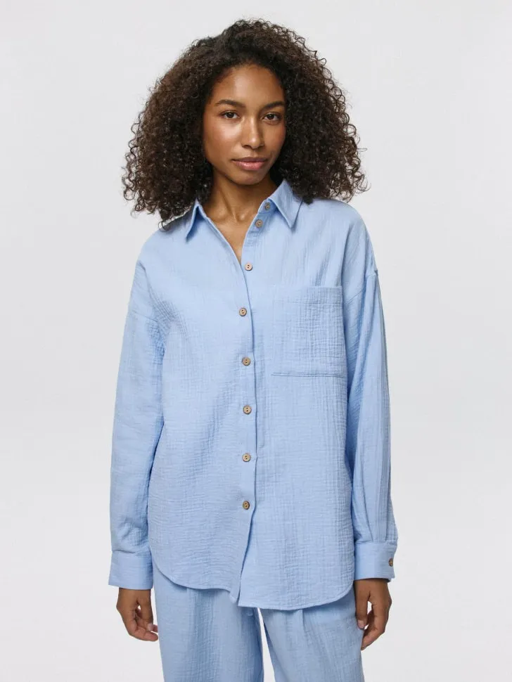 Оверсайз рубашка из муслина, голубой, арт. 6598