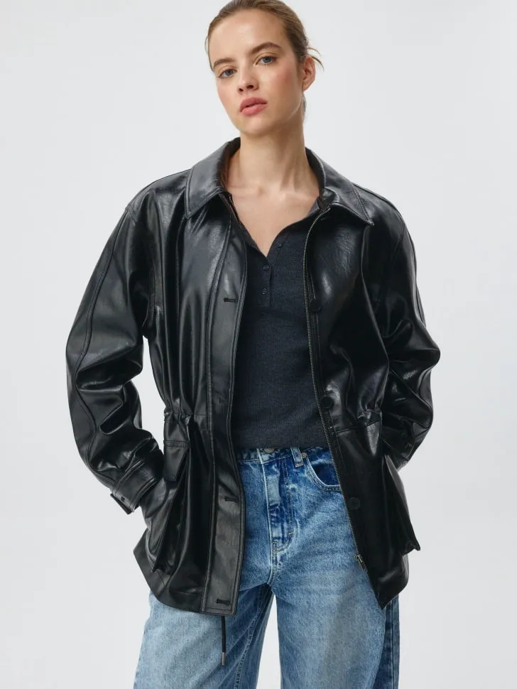 Куртка из экокожи с кулиской по талии, арт. 4507