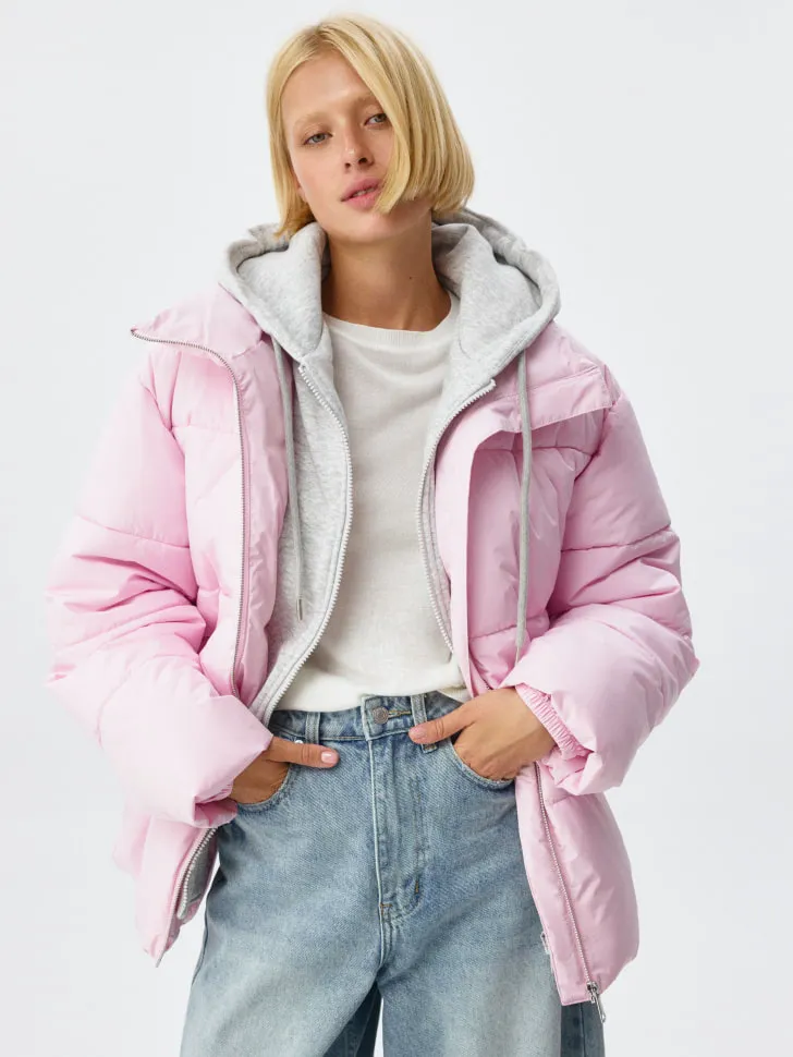 Куртка оверсайз с трикотажным капюшоном, розовый, серый, арт. ART-001