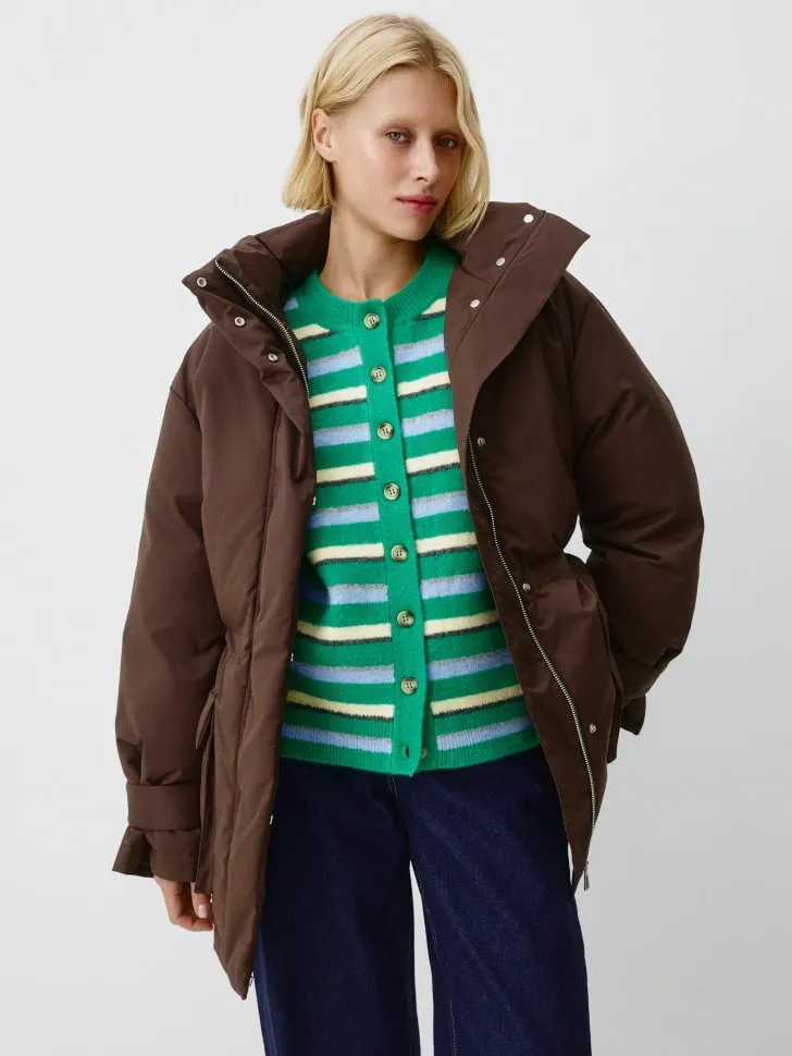 Куртка выполнена из качественных, износостойких материалов, обеспечивающих долговечность и легкость в уходе. Удобный крой не стесняет движений, позволяя чувствовать себя свободно в любой ситуации. Эта модель станет ключевым элементом вашего зимнего гардероба, легко сочетаясь как с джинсами и свитерами, так и с более элегантными нарядами. Выбирайте нашу куртку, чтобы оставаться в тренде и в тепле!