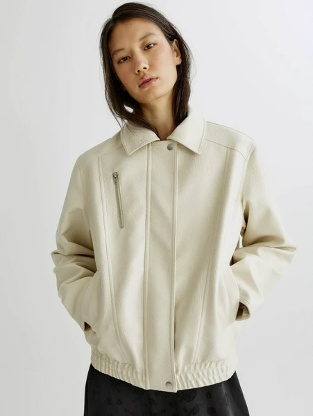 Куртка выполнена из высококачественной экокожи, которая не только выглядит эстетично, но и приятна на ощупь. Свободный крой оверсайз обеспечивает максимальный комфорт и позволяет создавать модные многослойные образы. Светло-бежевый оттенок легко сочетается с различными цветами и стилями, делая куртку универсальным дополнением к любому гардеробу. Она оснащена удобными карманами и надежной фурнитурой, подчеркивающей ее практичность и долговечность. Будьте в центре внимания с этой стильной и экологичной курткой!